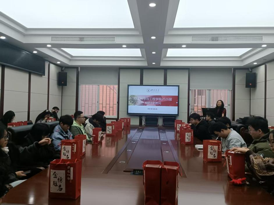 为鼓舞考研学子士气、缓解备考压力,2025年12月2日下午,轻工科学与工程学院举办考研慰问暨冲刺分享会。2022级本科生辅导员王舒灏及“思学中心”优秀小导师朱鸿杰、冯俊哲参加了本次活动。