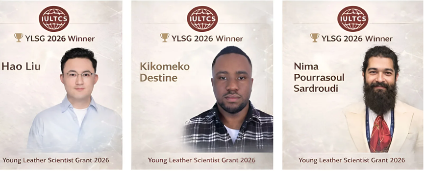 IULTCS日前正式公布了2026年度YLSG的获奖者名单。今年是颁发该奖项的第12,本届奖项设置三个类别,由IULTCS研究委员会(IUR)组织的评审委员会评选,授予年龄在35岁以下的年轻科学家我院2024级博士研究生刘昊凭借项目“Strategy for stability enhancement of biological leather-making technology: Preparation of protease inhibitor and its application in bating process”(生物制革技术稳定性提升策略:蛋白酶抑制剂制备及其在软化工艺的应用)荣获青年皮革科学家——基础科研奖。此外,Kikomeko Destine荣获青年皮革科学家——可持续发展奖Nima Pourrasoul Sardroudi荣获青年皮革科学家——机械科研奖