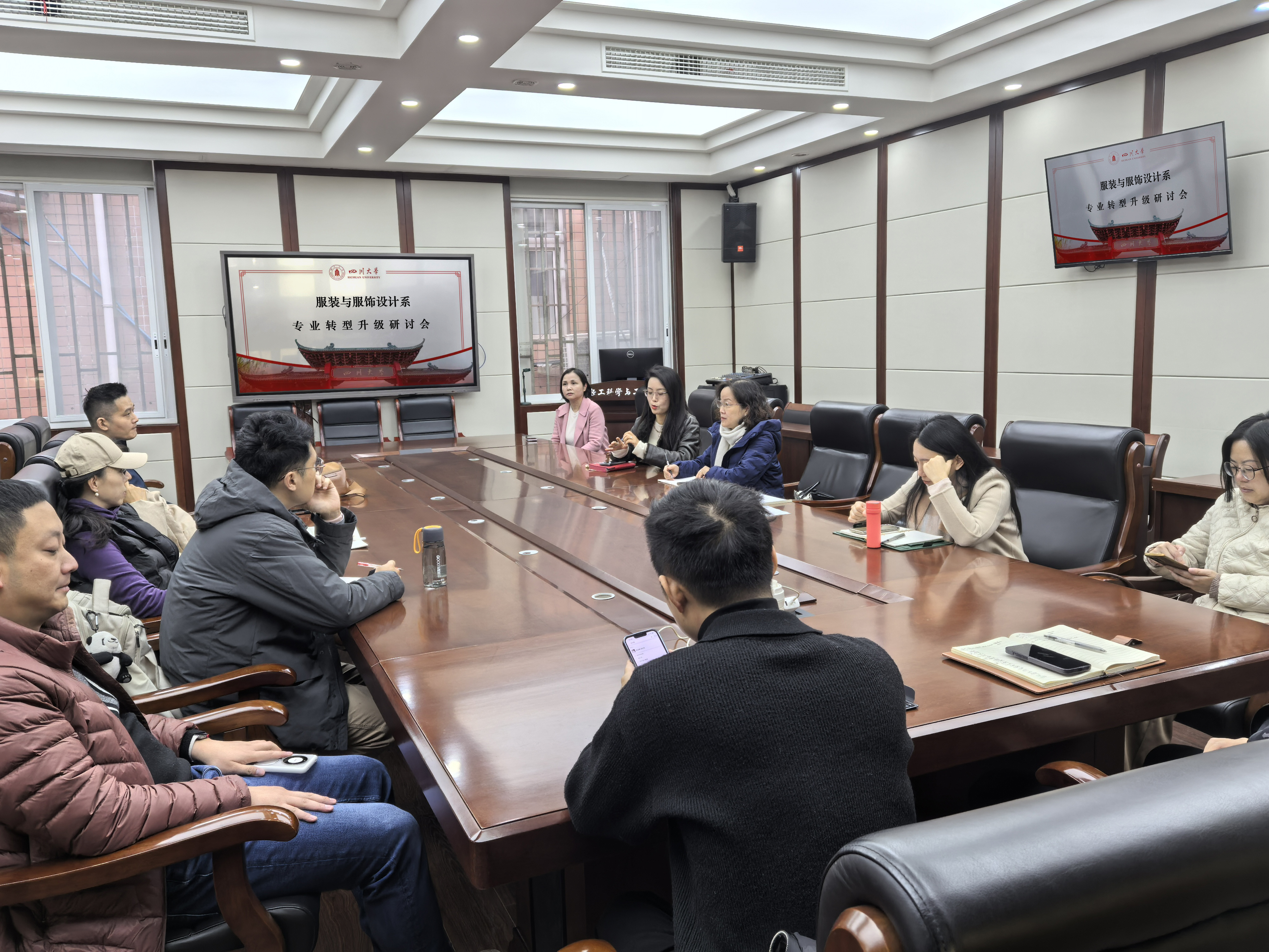 产业升级背景下,服装与服饰设计系积极探索专业发展方向,于 2025年11月18日上午在四川大学望江校区纺工附楼205会议室举行了专业转型升级研讨会。服装与服饰设计系全体教师参加了此次活动,系主任杨璐铭教授主持研讨会。