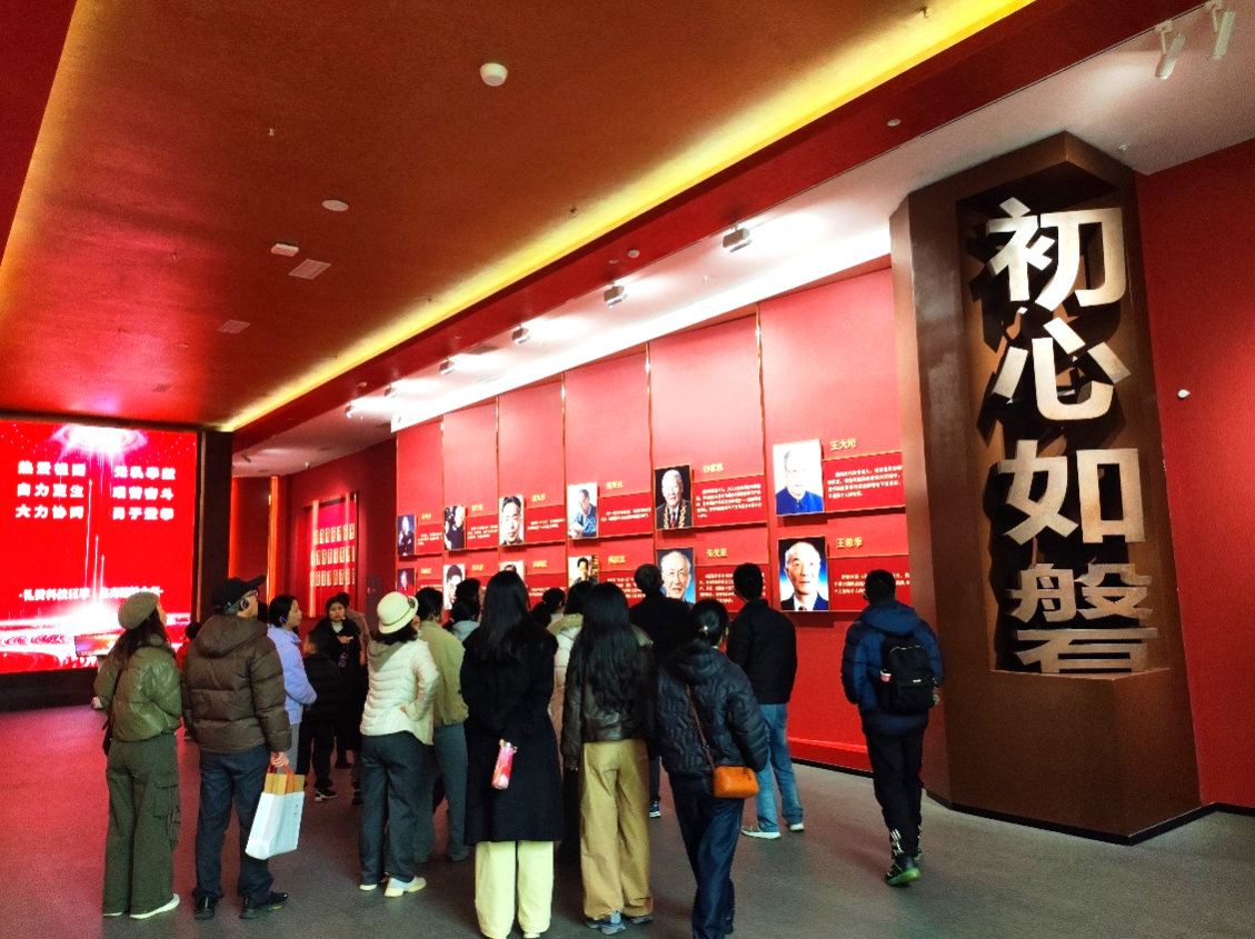 绵阳梓潼两弹城曾是中国工程物理研究院(九院)的院部旧址,是我国研制原子弹、氢弹的重要基地,见证了老一辈科学家们“干惊天动地事,做隐姓埋名人”的壮丽人生。在讲解员的带领下,支部成员首先参观了“两弹一星”红色文化长廊和两弹历程馆。通过大量珍贵的文献资料、历史照片和实物模型,党员们全面了解了我国核武器事业在物质极度匮乏、技术严密封锁的艰苦条件下,如何实现从无到有、从弱到强的伟大飞跃。在王淦昌旧居前,大家通过聆听老一辈科学家们不计名利、舍生忘死的感人事迹,深刻感悟到他们深厚的爱国主义情怀和对科学事业的极致追求。