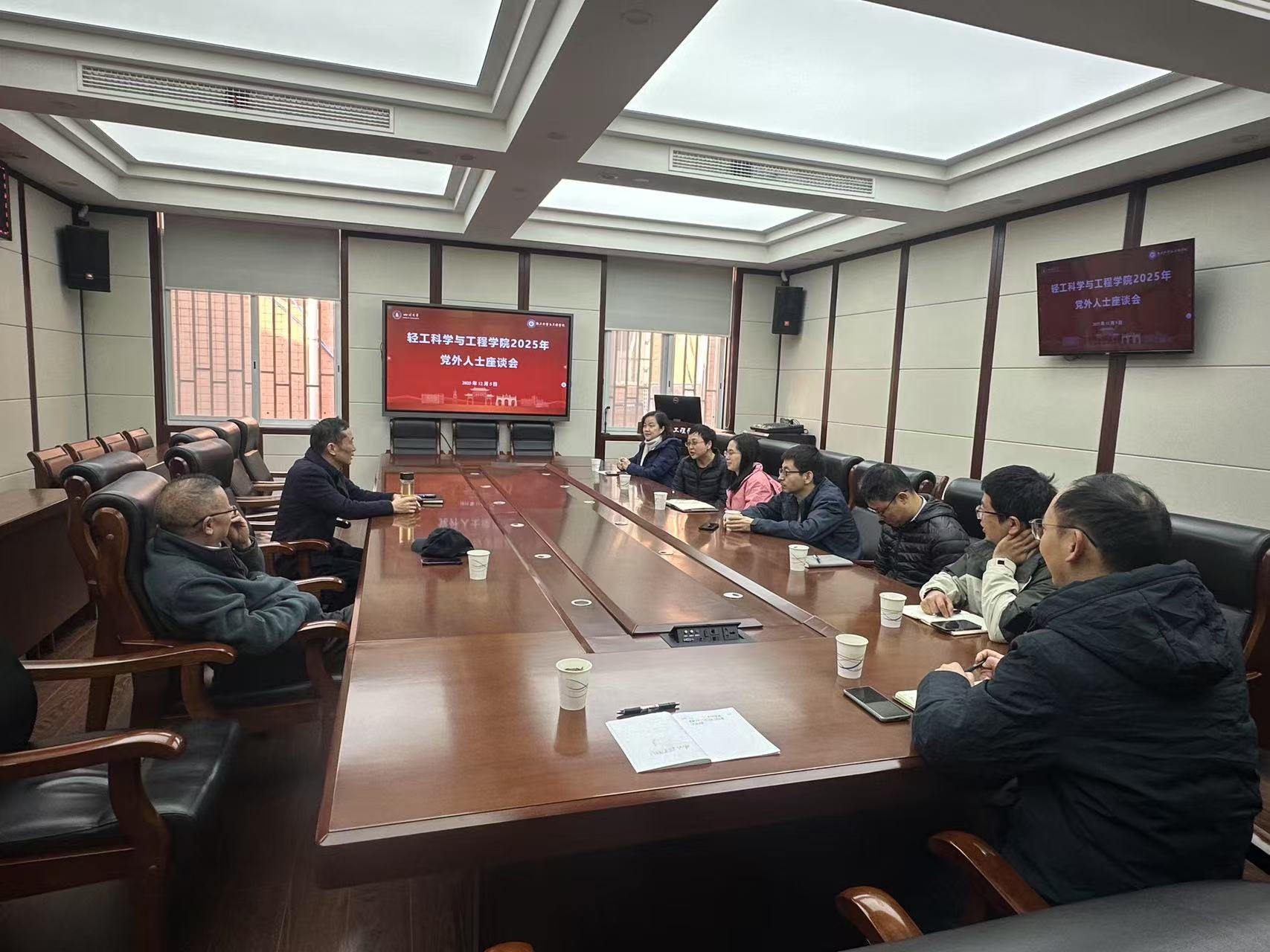 12月5日上午,轻工科学与工程学院2025年党外人士座谈会在望江校区纺工附楼205会议室召开。学院党委书记李天富,党政办公室负责人及各民主党派代表参加会议。会议由李天富书记主持。