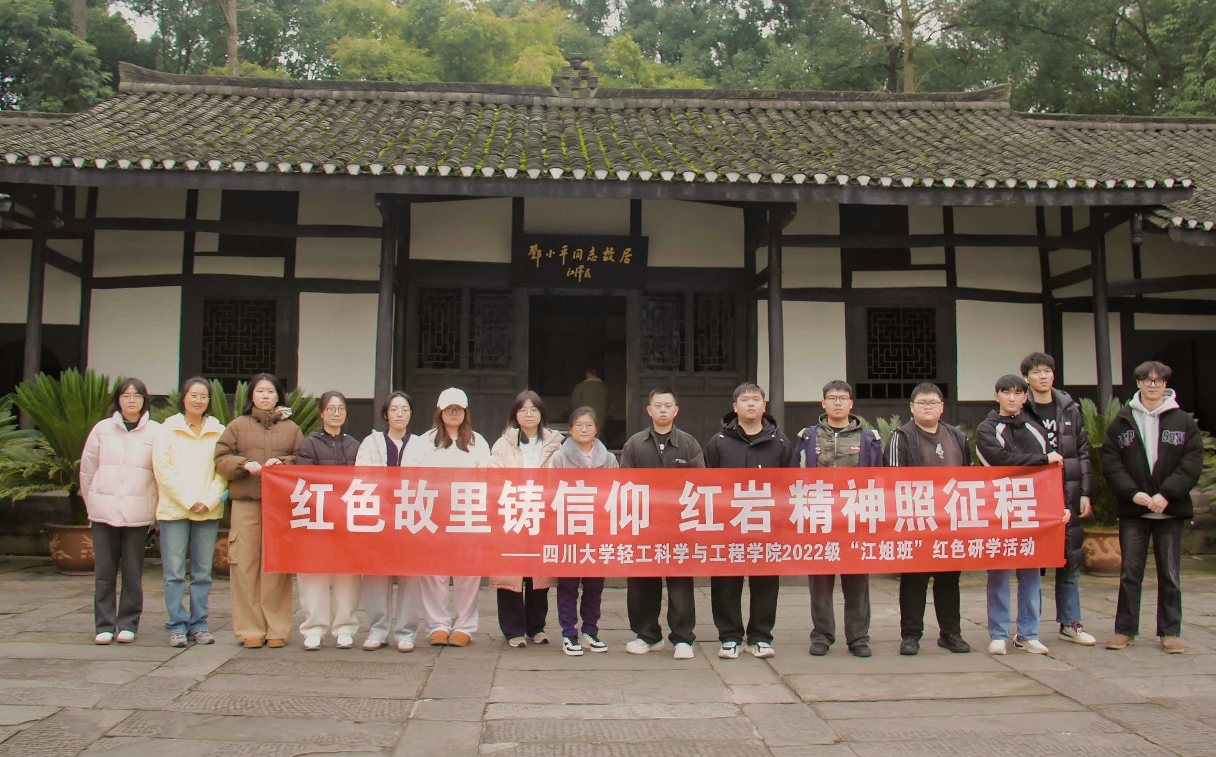 为传承红色基因、厚植爱国情怀、锤炼责任担当,12月26日至27日,学院“轻思”辅导员工作室组织2022级“江姐班”赴四川广安开展红色研学实践活动,让学生在“行走的课堂”中感悟革命精神、汲取奋进力量。活动由院团委书记王舒灏带队。