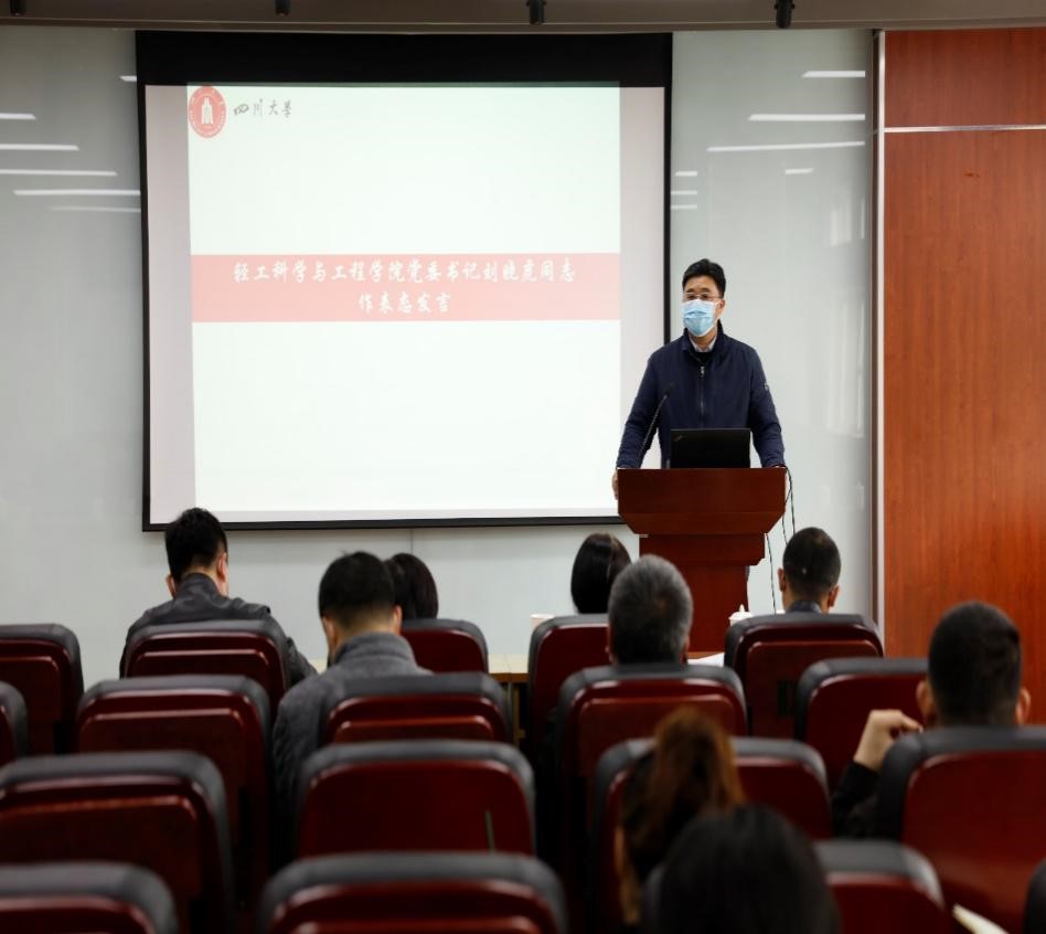 刘晓虎同志代表轻工科学与工程学院党委作表态发言。认为,巡察组对学院党委提出的意见和建议,客观公正、实事求是,符合学院实际,对加强和改进学院未来工作、保障各项事业健康发展,有着重要的指导意义。表示将从三个方面做好整改落实工作:一是坚定思想认识,全面接受巡察反馈意见。二是细化工作责任,全面落实巡察整改任务。三是巩固巡察成效,全面加快学院建设与发展。强调,学院党委将以本次巡察整改为契机,破解制约学院发展的瓶颈性问题,压实立德树人根本任务,凝聚并形成建设一流学院的强大合力,为实现学校“两个伟大”奋斗目标做出更大贡献。