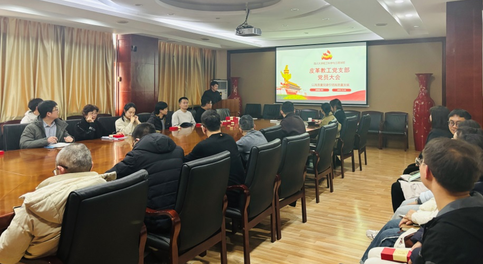 20251226日,轻工科学与工程学院皮革教工党支部在皮革楼209会议室开展了“以高质量党建引领高质量发展”主题党日活动。本次活动旨在深入学习贯彻党的二十届四中全会精神,强化基层党组织建设,切实以高质量党建引领事业高质量发展。活动由支部书记周加境主持,学院党委书记李天富、院长彭必雨、党委副书记兼纪委书记姜新到会指导。